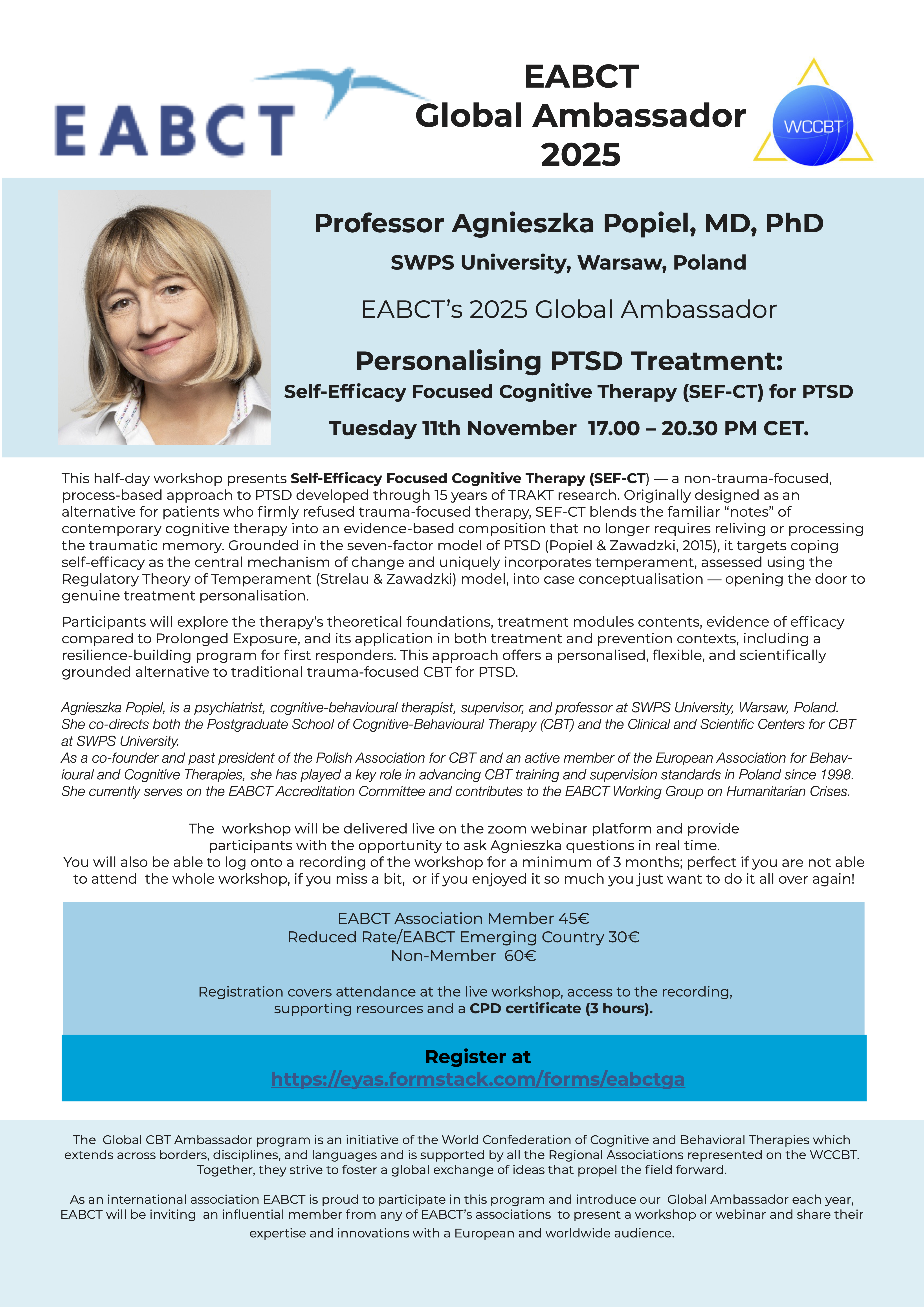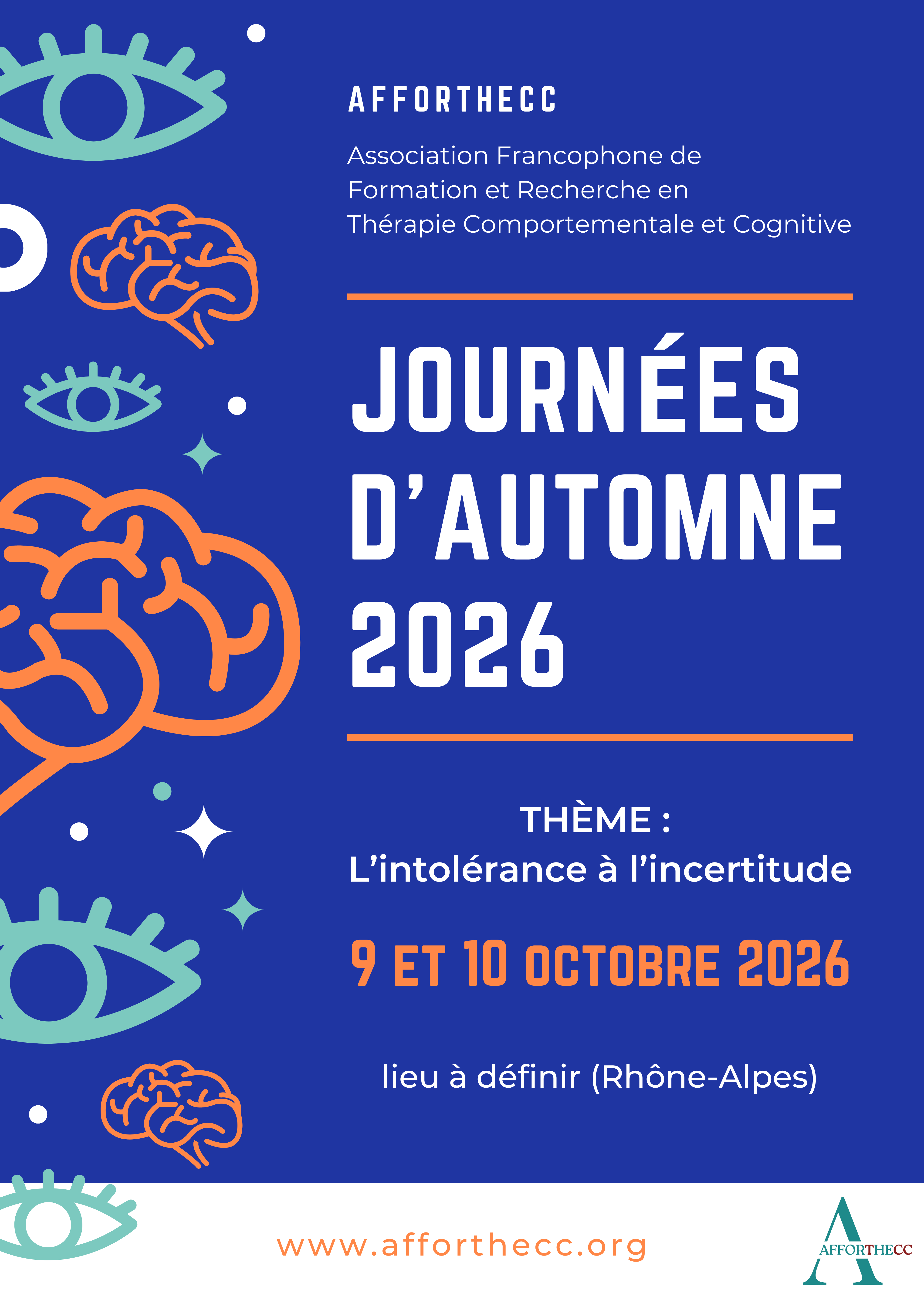 Les deux journées seront centrées sur la présentation d’une nouvelle conceptualisation de la prise en charge du trouble obsessionnel compulsif (TOC). Les différents processus psychologiques retenus dans le TOC seront présentés ainsi que diverses stratégies d’intervention dont celles sur les métacognitions.